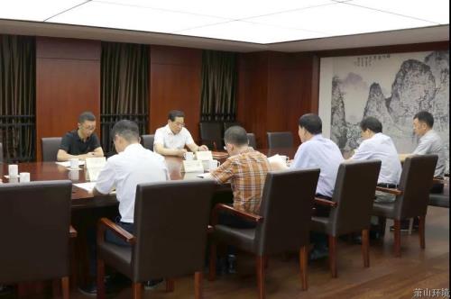 8月5日下昼,,,,,区人大常委会副主任徐建中一行到萧山情形集团走访调研。。。。。集团党委书记、董事长胡妙生,,,,,党委副书记、总司理江峰等班子成员加入调研。。。。。