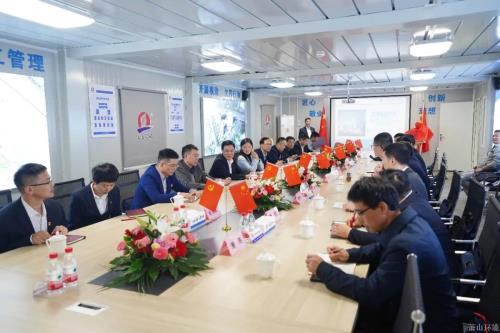 支部建在项目上,,,,,,,,党旗飘在工地上。。。。。。。。为进一步提高项目参建各方的凝聚力和战斗力,,,,,,,,发挥建设者们敢于继续、勇挑重担的战斗精神,,,,,,,,充分验展下层党组织的战斗堡垒和党员先锋带举措用,,,,,,,,11月16日,,,,,,,,中共环橙(国际)科创中心项目暂时支部委员会在项目部现场揭牌建设。。。。。。。。
