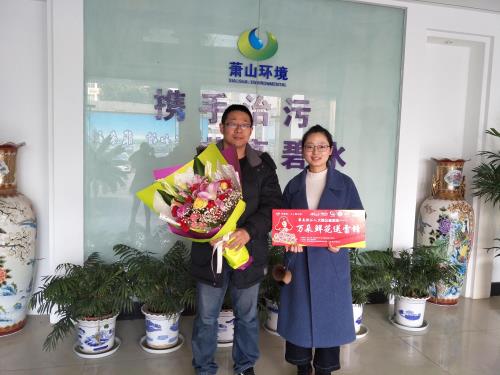 为学习新时代“雷锋精神”,,,,,,,树立践行“雷锋精神”的先进典范,,,,,,,3月上旬,,,,,,,集团团委开展“鲜花送雷锋”评选运动。。。。。。。9日上午,,,,,,,公司团总支代表集团团委向坚守在岗位上的四名污水“活雷锋”送上鲜花,,,,,,,并向他们致以高尚的敬意。。。。。。。