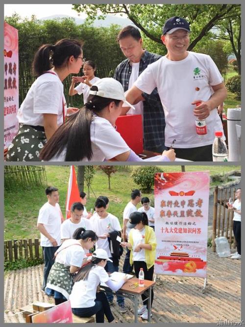 4月25日下昼,,,,,,,,污水公司机关党支部组织全体党员及入党起劲分子前往云石国家爬山健身步道开展意见意义健行运动,,,,,,,,以运动、思索、学习为主题,,,,,,,,使党员们在亲近自然中愉悦身心,,,,,,,,同时加入党建知识问答,,,,,,,,以牢靠学习党的十九大精神。。。。。。。。