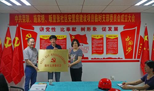 为深入贯彻党的十九大精神,,,,,,,周全落实从严治党向下层延伸的要求,,,,,,,凭证区委组织部及萧城改办、萧安顿房办有关文件精神,,,,,,,5月28日,,,,,,,集团首个在建工地暂时党支部——中共荣联、施家桥、畈里张社区安顿房建设项目暂时党支部正式建设,,,,,,,集团党委书记施素梅,,,,,,,党委委员、纪委书记周田元,,,,,,,党委委员、副总司理江峰,,,,,,,城开公司、各参建单位有关认真人及项目部全体党员加入了建设大会。。。。。。
