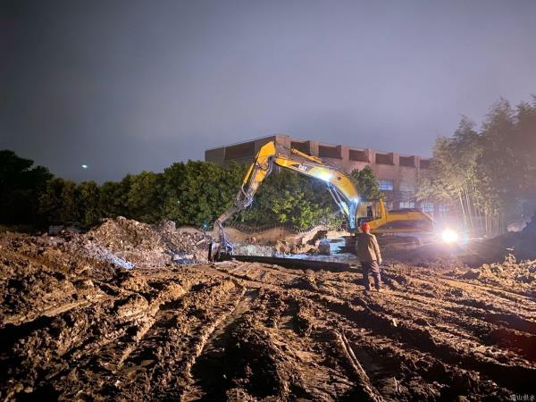 工程开工前,,,,,,,,公司多部分向导一行多次莅临现场举行调研勘探。。。。。。。。对工程建设提出建议制订计划。。。。。。。。随着海内疫情的控制,,,,,,,,交通大会战按下“快进键”,,,,,,,,泵站加药间的迁改事情也加速举行。。。。。。。。现场工人们防疫生产两手抓,,,,,,,,抓紧施工,,,,,,,,并使用夜间一连作业抢抓工期,,,,,,,,把延伸的时间抢回来,,,,,,,,确保工期能准期完成投入使用。。。。。。。。