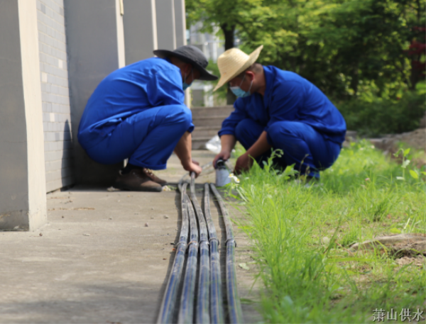 4月的江东水厂,,,,,一边是热火朝天、忙碌的二期建设工地,,,,,改扩建工程正在加速实验中,,,,,新的清水池池体已经初露眉目,,,,,围挡的另一边,,,,,同样是水厂员工忙碌的身影,,,,,他们正在对一期后加以及补加次氯酸钠管举行改接,,,,,从管沟开挖、穿越马路钢管预埋,,,,,到加药管布设、割接,,,,,正一步一步有条不紊地举行着,,,,,此举是为水厂二期清水池联通管铺设让行。。。。。。。