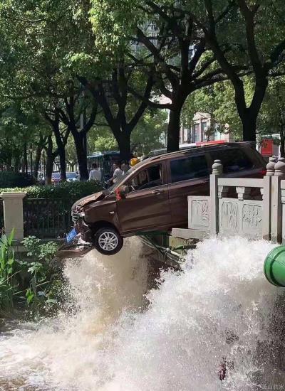 因城厢街道育才路育才桥处交通事故,,,,,,事故车冲断了桥梁护栏,,,,,,受强外力撞击桥边供水管桥损坏。。。。。。。。