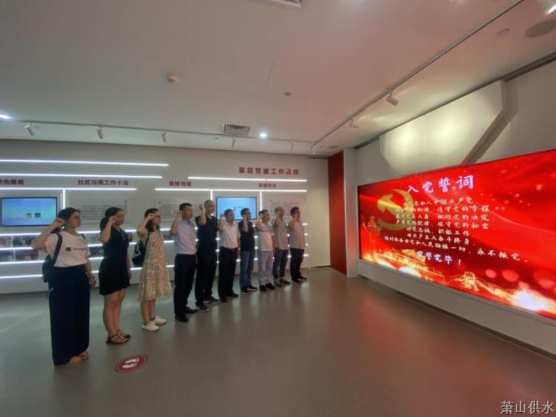 来到3楼的党建宣传展厅,,,,,,,我们追随解说员的脚步,,,,,,,先后旅行学习了时代回响、党建绘卷、先锋模范、使命征程等展区,,,,,,,深刻地感受萧山党建的历史生长、萧山走过的红色历程、萧山走过的红色历程、萧山时代楷模等等。 。。 。。旅行完毕,,,,,,,全体党员面临党旗,,,,,,,庄重地高举右拳,,,,,,,再一次作出自己对党的庄重允许,,,,,,,越发坚定了党员的庆幸感、使命感和责任感。 。。 。。