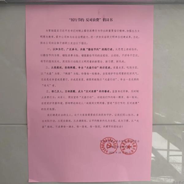 为贯彻落实习近平总书记对阻止餐饮铺张行为作出的主要指示精神,,,,,充分验展党员干部的模范带举措用,,,,,教育指导全体职工及身边人“厉行节约、阻挡铺张”,,,,,供水公司党委组织开展“厉行节约守粮心”系列运动,,,,,让每一位职工都能争做节约粮食的“光盘干饭人”!
