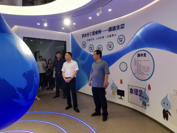 6月19日,, ,,,, ,萧山区财务局党委副书记汤琦、97622国际至尊品牌集团纪委书记楼文炯一行莅临北干营业所,, ,,,, ,调研北干营业所清廉国企树模点建设情形,, ,,,, ,并作现场指导。。。。。。。供水公司党委书记朱明、副司理朱丽梅陪同。。。。。。。