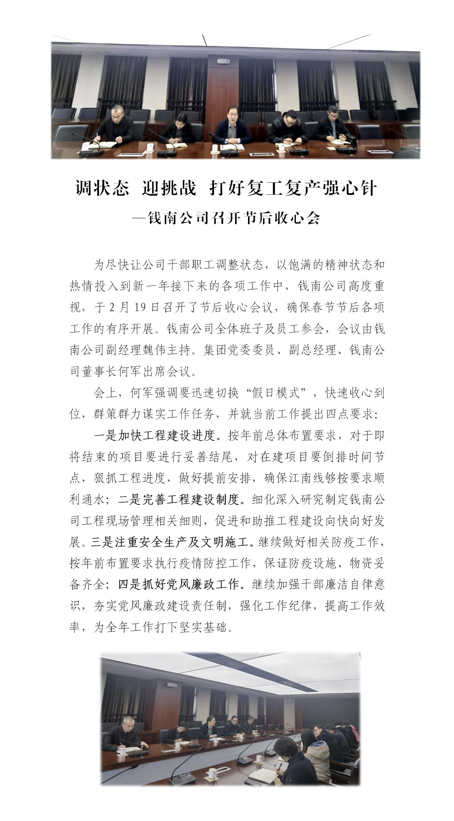 调状态 迎挑战 打好复工复产强心针—钱南公司召开节后收心会