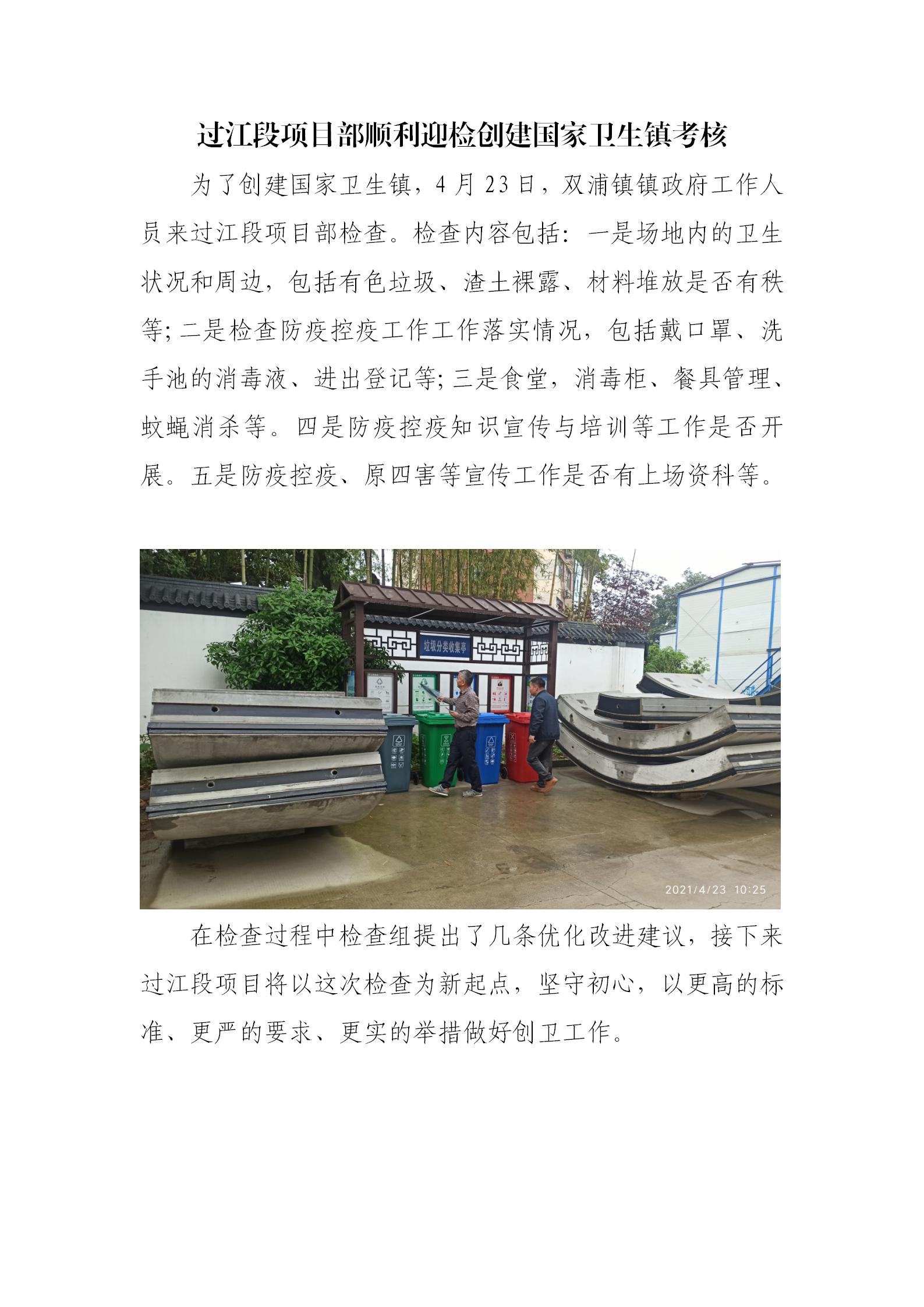 过江段项目部顺遂迎检创开国家卫生镇审核