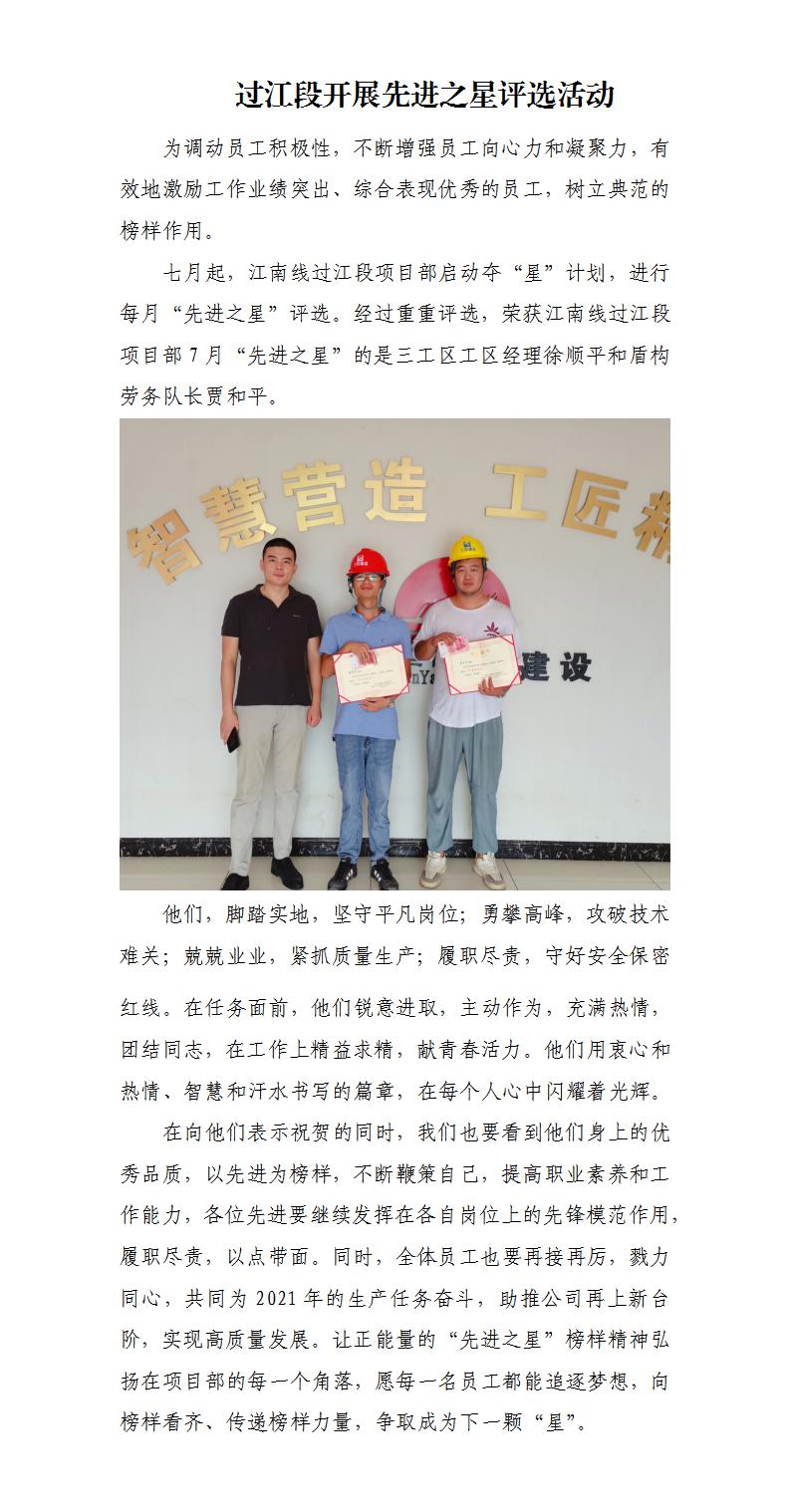 过江段开展先进之星评选运动