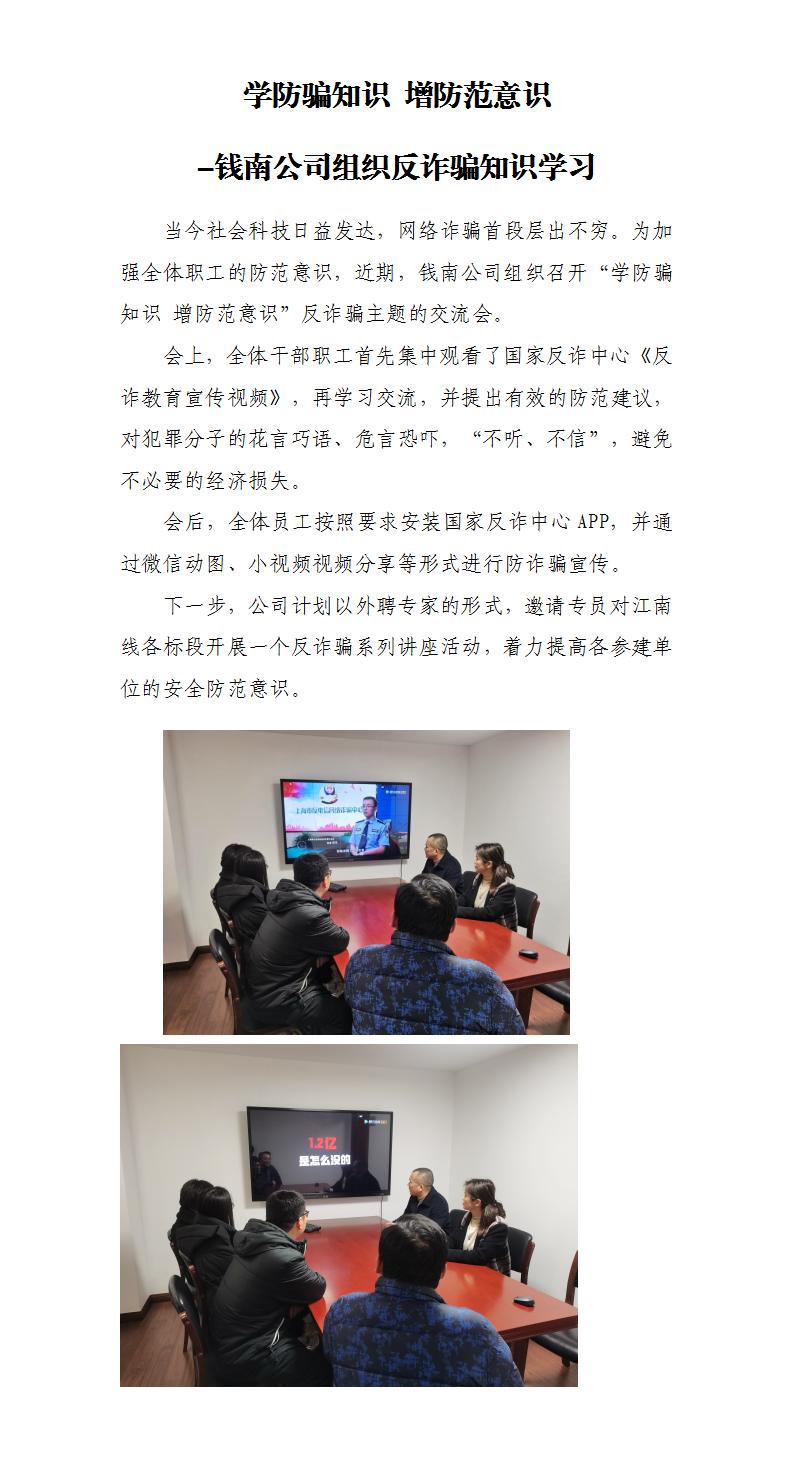 学防骗知识 增提防意识 -钱南公司组织反诈骗知识学习