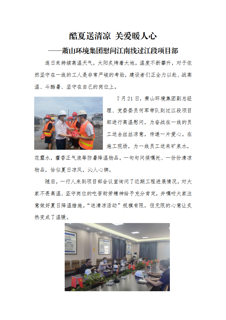 酷夏送清凉 关爱暖人心 ——萧山情形集团慰问江南线过江段项目部