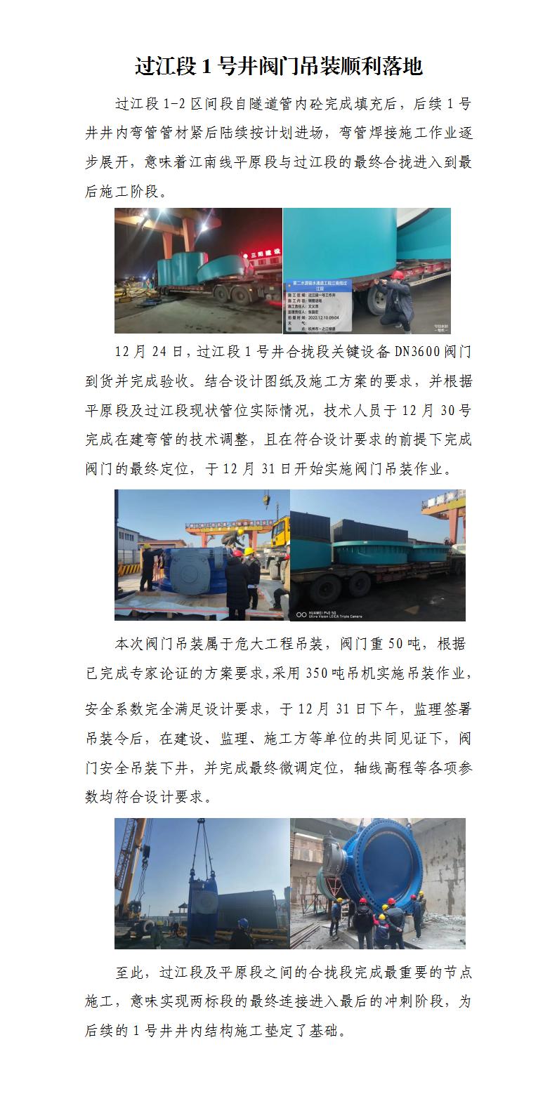 过江段1号井阀门吊装顺遂落地