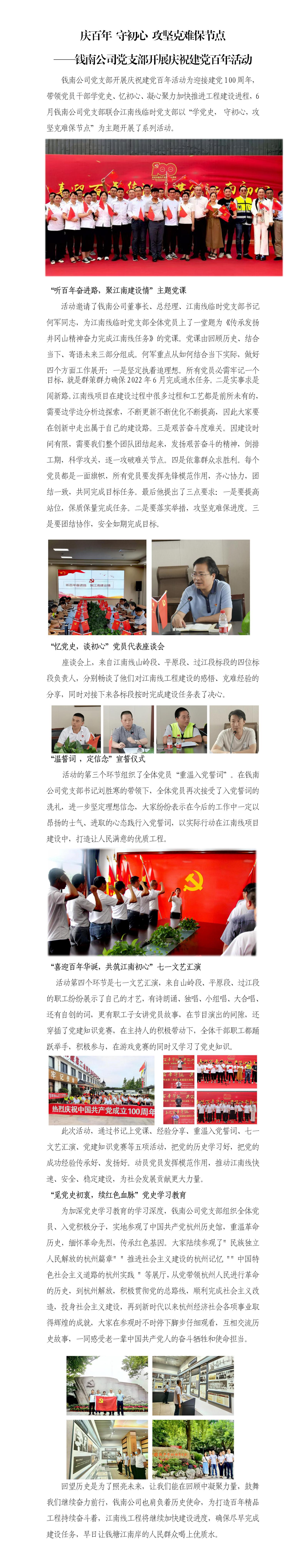 庆百年 守初心 攻坚克难保节点 ——钱南公司党支部开展庆祝建党百年运动