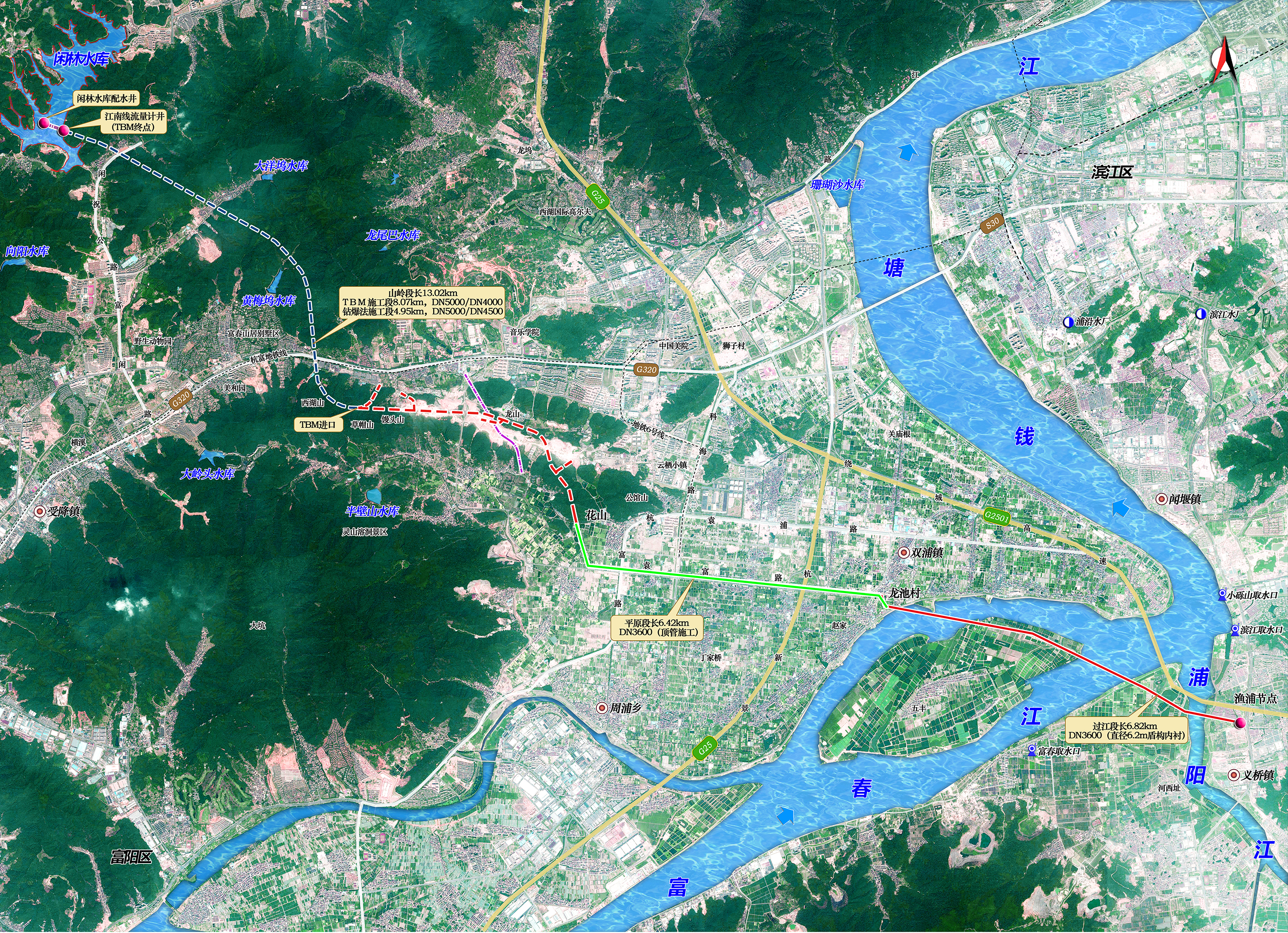 工程自余杭闲林水库配水井最先,,,,,,,,新建输水隧洞和管道,,,,,,,,途经余杭、西湖、富阳、萧山四个行政区,,,,,,,,最后至萧山渔浦节点,,,,,,,,总长26公里,,,,,,,,总投资约30亿元,,,,,,,,全线3个标段分段开工建设,,,,,,,,划分为山岭段、平原段和过江段。。。 。。。