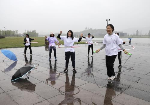雨水浇不灭热情,,,,,阴霾遮不住笑容。。。。。。。上午9时许,,,,,80余名集团干部职工从湘湖金融小镇出发,,,,,最先5公里毅行,,,,,途经定山广场、湘湖三期花海、摇橹船环行一周至达湘湖金融小镇会客厅后竣事,,,,,时长约1小时。。。。。。。