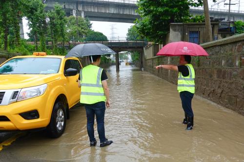 指导过往车辆避开积水处