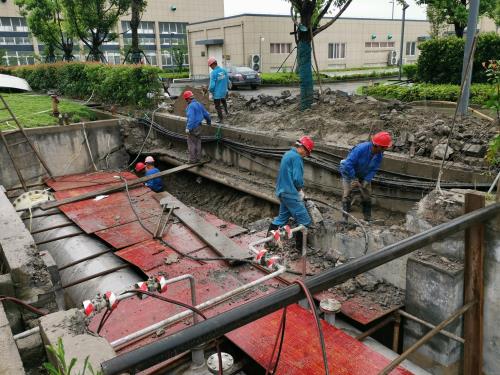 此前,,,,,,,,巡检职员发明CD组流量计井泛起破碎,,,,,,,,380V出线电缆沟下方土壤大宗流失,,,,,,,,局部坍塌。。。。。。为避免进一步坍塌恶化,,,,,,,,该厂第一时间设置警戒围护,,,,,,,,安排井点降水坚持水土不再流失,,,,,,,,同时联系第三方单位开展管道检测,,,,,,,,查明缘故原由。。。。。。