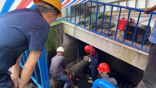 7月25日23时55分,,,,,,,中片运管中心事情职员迎风冒雨,,,,,,,紧绷清静施工这根弦,,,,,,,在狭窄的集水池整整奋战17个小时,,,,,,,顺遂完成泰和泵站水泵刷新。。。。 。。