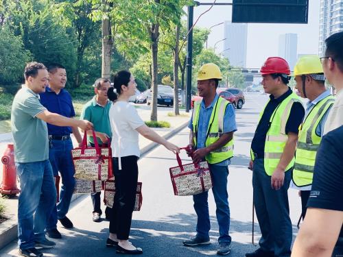 连日高温,,,,,,烈日似火。。。。。。。8月20日上午,,,,,,盈丰街道党工委副书记张丹,,,,,,街道服务处副主任楼旭光等一行,,,,,,亲热慰问污水处置惩罚公司北片运管中心一线巡查、打捞职员,,,,,,谢谢他们为都会生长和民生包管作出的孝顺,,,,,,同时送上防暑降温慰问品,,,,,,嘱咐各人注重高温防暑。。。。。。。