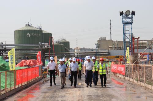 8月25日上午,,,,,,,集团董事长、总司理韩国华, 集团党委委员、副总司理何军一行来到钱江水处置惩罚厂,,,,,,,现场检查指导四期扩建工程项目建设事情。。。。。。。。