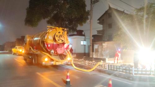 当天下昼3时,,,,,东片运管中心接讯,,,,,瓜沥泵站DN1400管排气阀井故障。。。。。。东片运管中心连忙启动应急预案,,,,,前往现场踏勘,,,,,制订抢修计划,,,,,使用槽罐车将污水转运至瓜沥泵站。。。。。。故障抢修时代,,,,,瓜沥镇、衙前镇、红垦农场、萧山机场等区域相关涉水企业均阻止污水运送。。。。。。经由7小时一连施工,,,,,排气阀井抢修顺遂完成并恢复通水。。。。。。