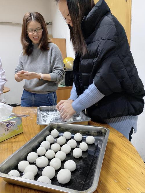 冬至吃麻团是萧山外地特色。。。。。。“冬至大如年,,,,,,吃了冬至麻团,,,,,,就又大一岁了”一个个圆滔滔软糯糯的麻团在检测公司金盏花省级巾帼岗岗员们的手中成形,,,,,,煮好咬一口,,,,,,满口留香。。。。。。
