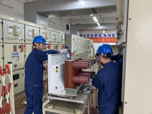 维保小组凭证设立清静警示、断开供电、整理灰尘、添加润滑、预防试验等工序有条不紊开展维保。。。。。。清静检查小组主要检查绝缘垫、挡鼠板、防虫网、灭火器等清静设施完好水平,,,,,以及验电棒、接地线等清静工具磨练有用期。。。。。。