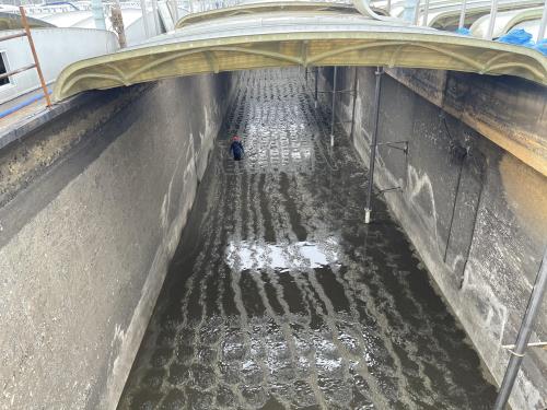钱江厂妄想使用春节前后水量低位的窗口期,,,,,对二期生化反应池A池曝气系统举行大修,,,,,工程主要涉及破损曝气膜替换、梗塞曝气膜洗濯、ABS立柱替换为304不锈钢材质等,,,,,需周全清池作业。。。。。施工总工期预计39天,,,,,其中清池阶段20天,,,,,维修阶段19天。。。。。