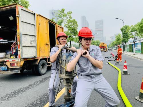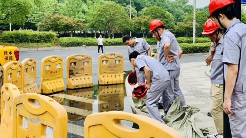 演练模拟强降雨天气 ,,,,,,雨水管道泛起满溢。。。。。应急步队接讯后实时响应 ,,,,,,各小组分工明确 ,,,,,,预警、后勤包管、救护包管、强排作业各环节有序开展 ,,,,,,疏通雨水管网 ,,,,,,切实抵达演练效果。。。。。