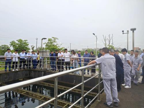 代表们先后旅行了中控室和高效沉淀池 , ,,,,在事情职员的现场操作和解说下 , ,,,,相识了污水处置惩罚从粗格栅到纤维转盘滤池等多道处置惩罚工艺 , ,,,,并通过进水水质和出水水质的现场比照 , ,,,,见证了污水怎样转换成可达标排放的清亮水体。。。。。。