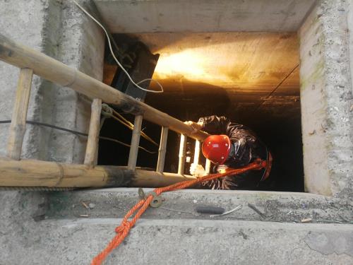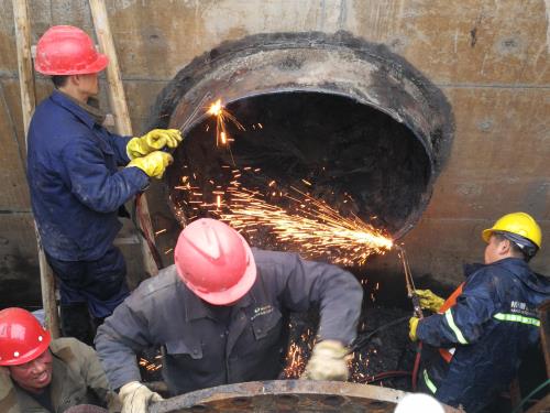 于此同时,,,,,在生化池污泥回流污泥井,,,,,另一项抢修工程也主要有序举行着,,,,,48小时内给两座反硝化污泥井装置10道流道隔墙。。。。。。。